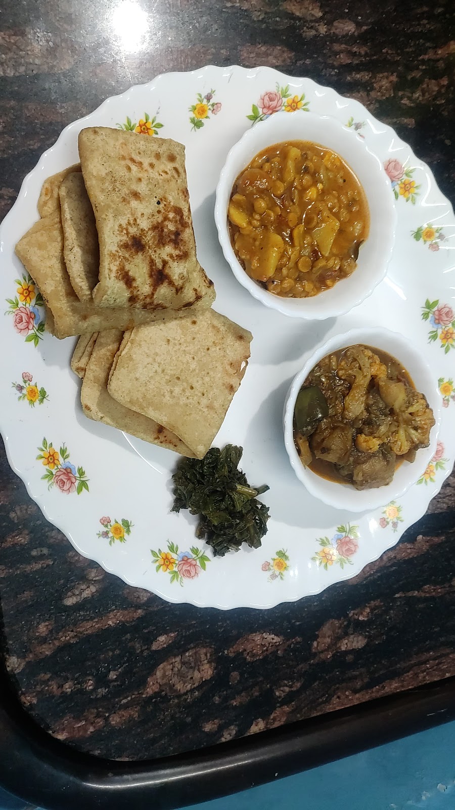 Salad, 2 roti with ladyfinger fry, lentil and tomato chutney